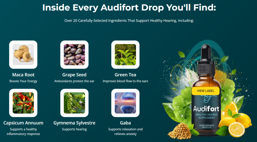 Audifort is a liquid dietary supplement designed to provide support for hearing health and overall well-being. Unlike traditional products that focus on a single mechanism, it presents itself as a multifunctional formula, combining over 20 natural ingredients that work together in a complementary way within the body. This broader approach suggests that the product is not limited strictly to hearing itself, but also considers systemic factors that may influence auditory perception over time.